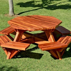 Octagon Picnic Table Wood Picnic Table With Attached Bench