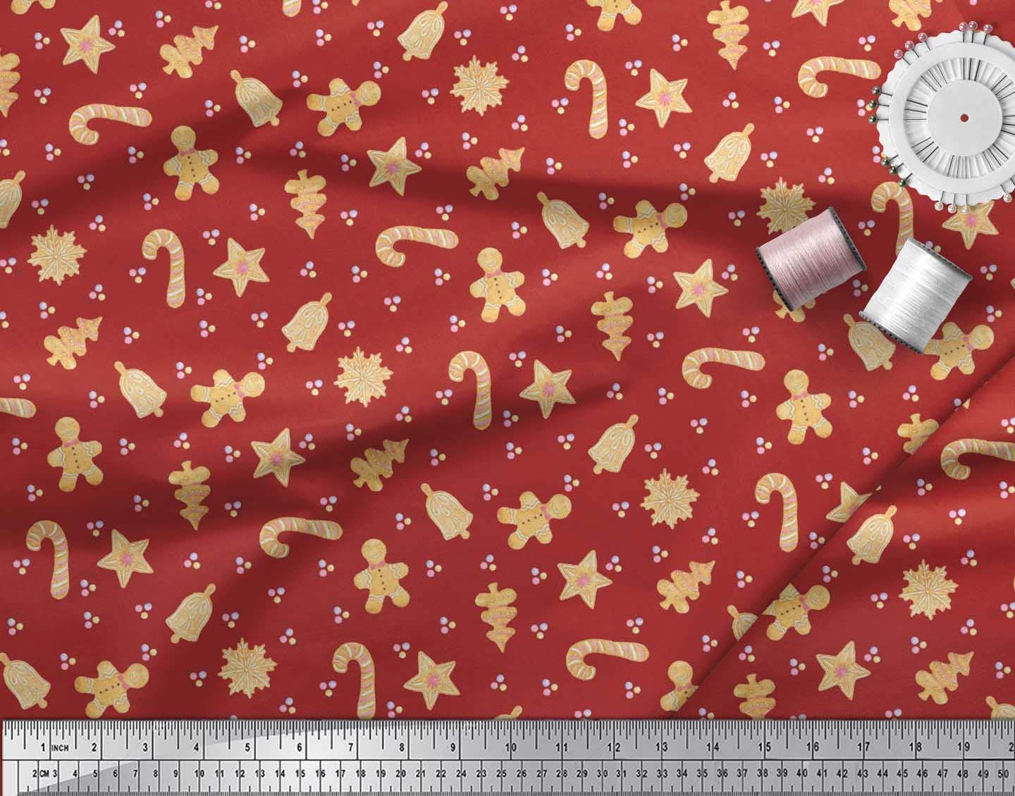 Soimoi Red Cotton Jersey Fabric Candy Stick Star Bell Christmas Print Sewing Fabric Metre 58 Inch Wide Amazon Co Uk Home Kitchen